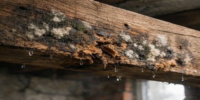 Uno de los más comunes son las filtraciones: pequeñas entradas de agua por un tejado, por una fachada, por una terraza o incluso por un sellado defectuoso en ventanas. A veces el agua no cae directamente sobre la madera, pero la humedad ambiental sube lo suficiente como para que el hongo empiece a crecer.